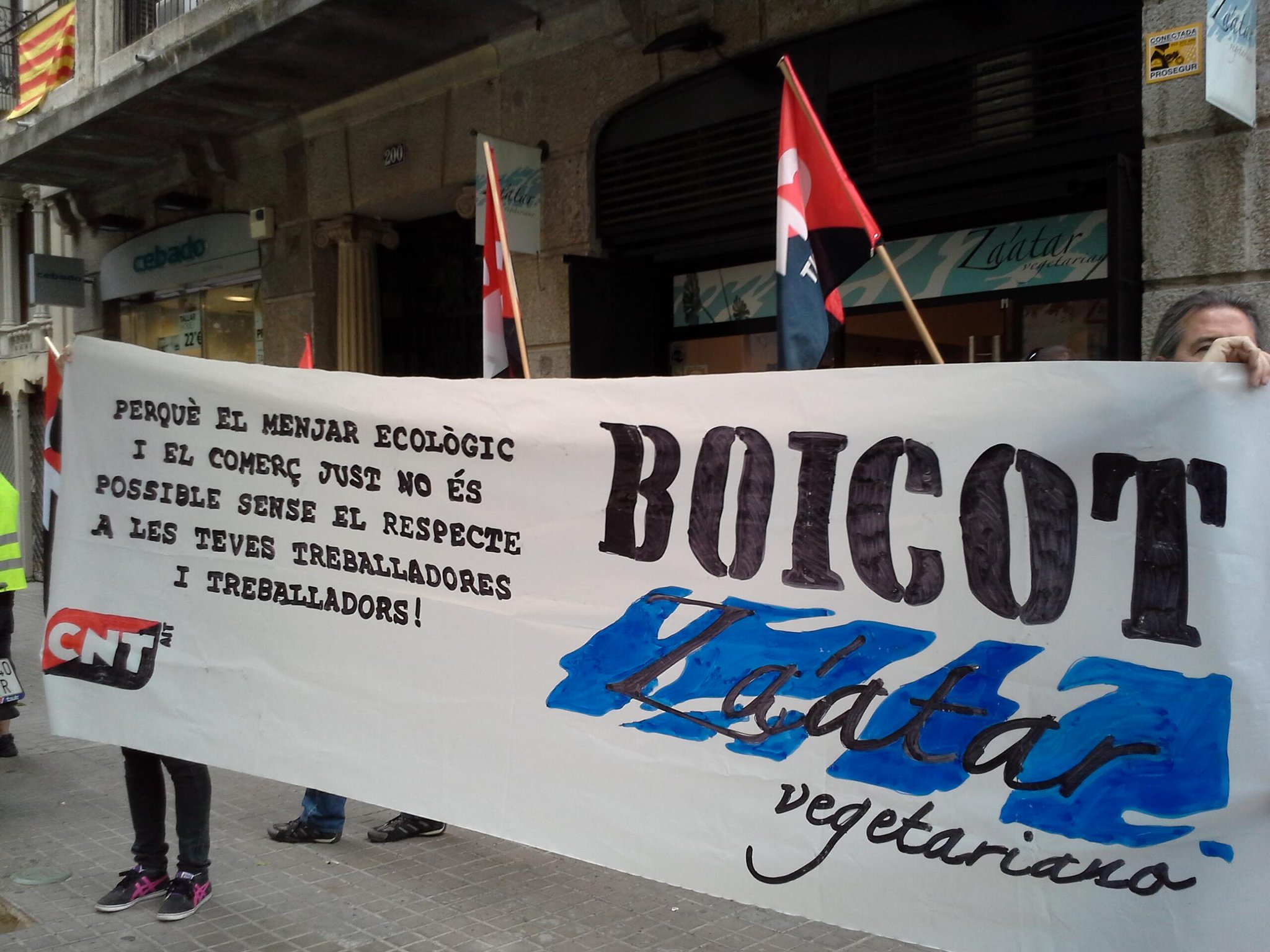 Emprant l’acció directa (sense intermediàries), la solidaritat i el suport mutu, es va procedir a iniciar una campanya de boicot i de visualització del conflicte amb Zaatar Vegetariano, facilitant tota la informació disponible de tot el que hi havia i succeïa a l’interior de l’empresa (explotació laboral, coaccions i mentides) a la resta de treballadors, clients i veïnes del barri. A més a més es van realitzar dues concentracions davant del lloc de treball de les nostres afiliades, situat al C/París nº200 de Barcelona; també ens agradaria remarcar la forta pressió per les xarxes socials que van realitzar solidaris i solidàries amb les extreballadores.